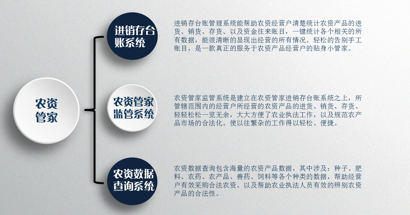 農(nóng)資管家監(jiān)管系統(tǒng)是建立在農(nóng)資管家進(jìn)銷存臺(tái)賬系統(tǒng)之上,所管轄范圍內(nèi)的經(jīng)營(yíng)戶所經(jīng)營(yíng)的農(nóng)資產(chǎn)品的進(jìn)貨、銷貨、存貨、輕輕松松一覽無(wú)余,大大方便了農(nóng)業(yè)執(zhí)法工作,以及規(guī)范農(nóng)產(chǎn)品市場(chǎng)的合法化。使以往繁雜的工作得以輕松、便捷。