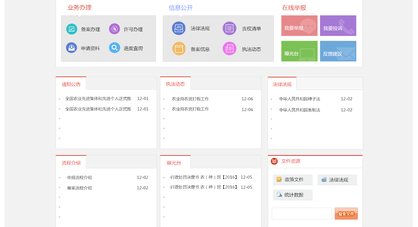 “新聞公告”模塊主要是發(fā)布一些新聞、公告和動(dòng)態(tài),既可以像群眾傳達(dá)信息,又可以增加農(nóng)業(yè)綜合執(zhí)法的透明度。